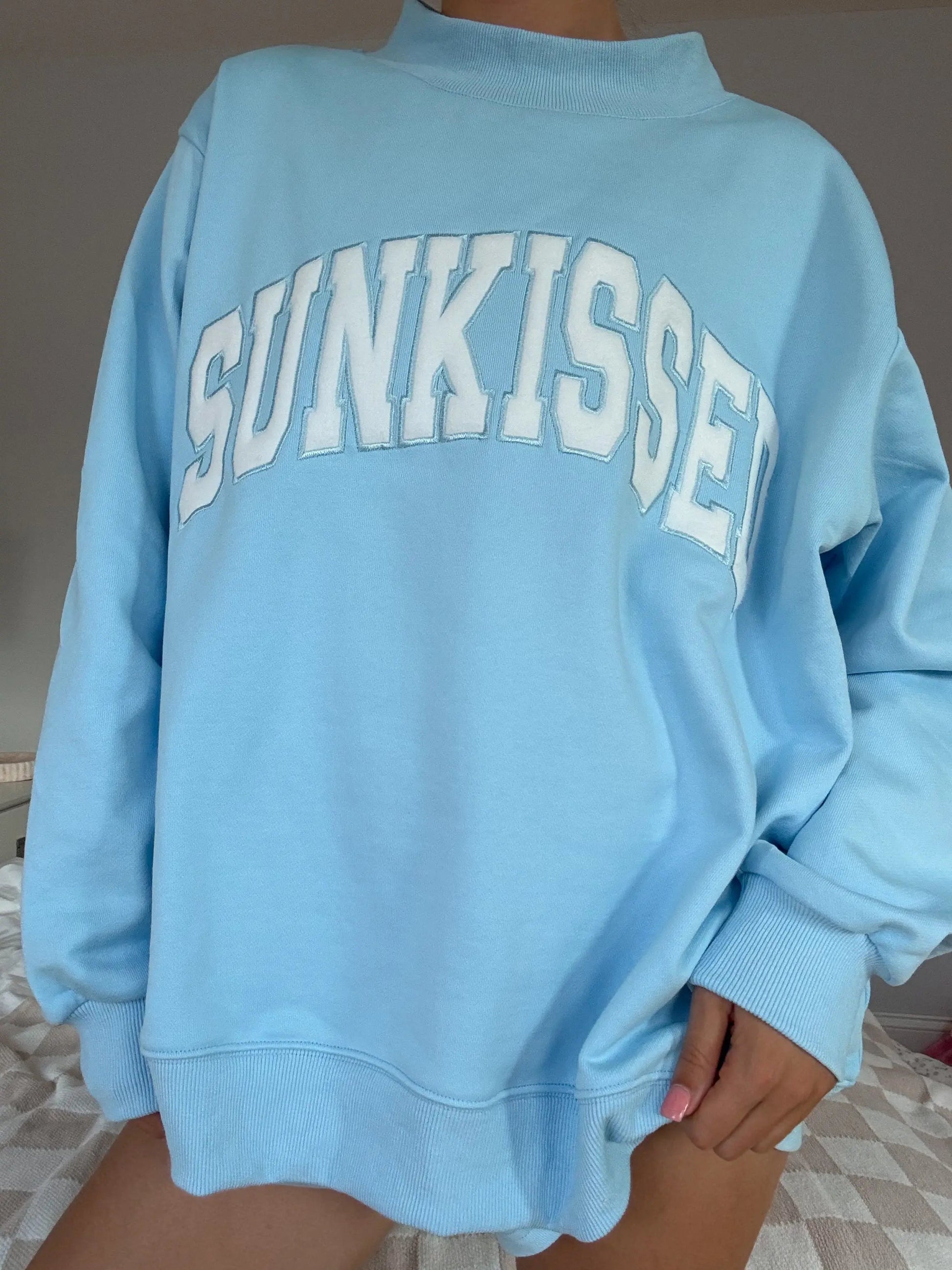 Berry Blue Varsity Sunkissed Embroidered Mockneck Sweatshirt 100% Cotton