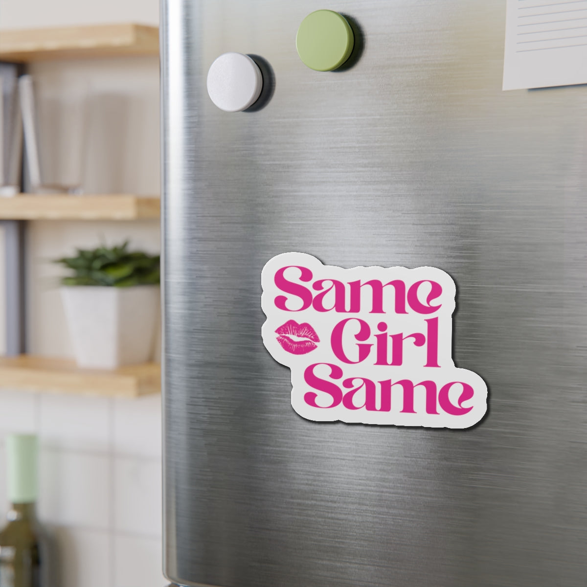 Die-Cut Magnet — "Same Girl Same" Pink Retro Lip Graphic