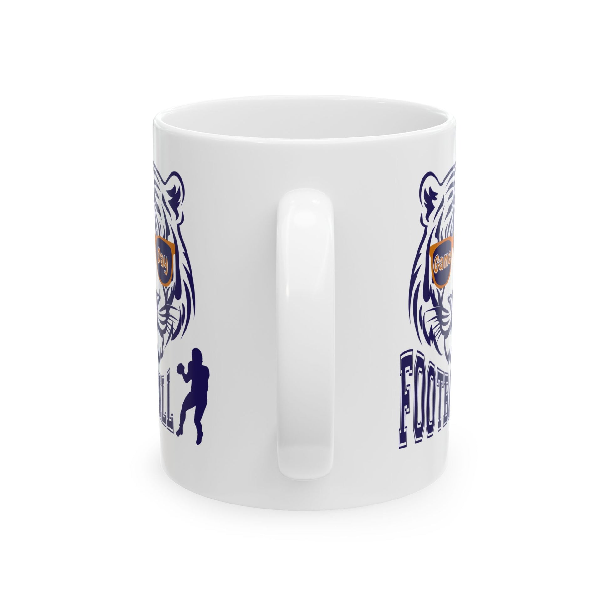 Sip slow and feel the pulse of game day. This glossy ceramic mug carries a bold, illustrated tiger and a compact football player silhouette—simple, strong imagery that sits cleanly against the bright white surface. It’s the kind of mug you reach for when you’re studying plays, plotting strategy on a weekend morning, or settling in to watch the kickoff. The handle fits easily in your hand; the vibrant print keeps its edge through daily use. Use it at the desk, on the bench, or beside the TV to keep that competitive energy close at hand.