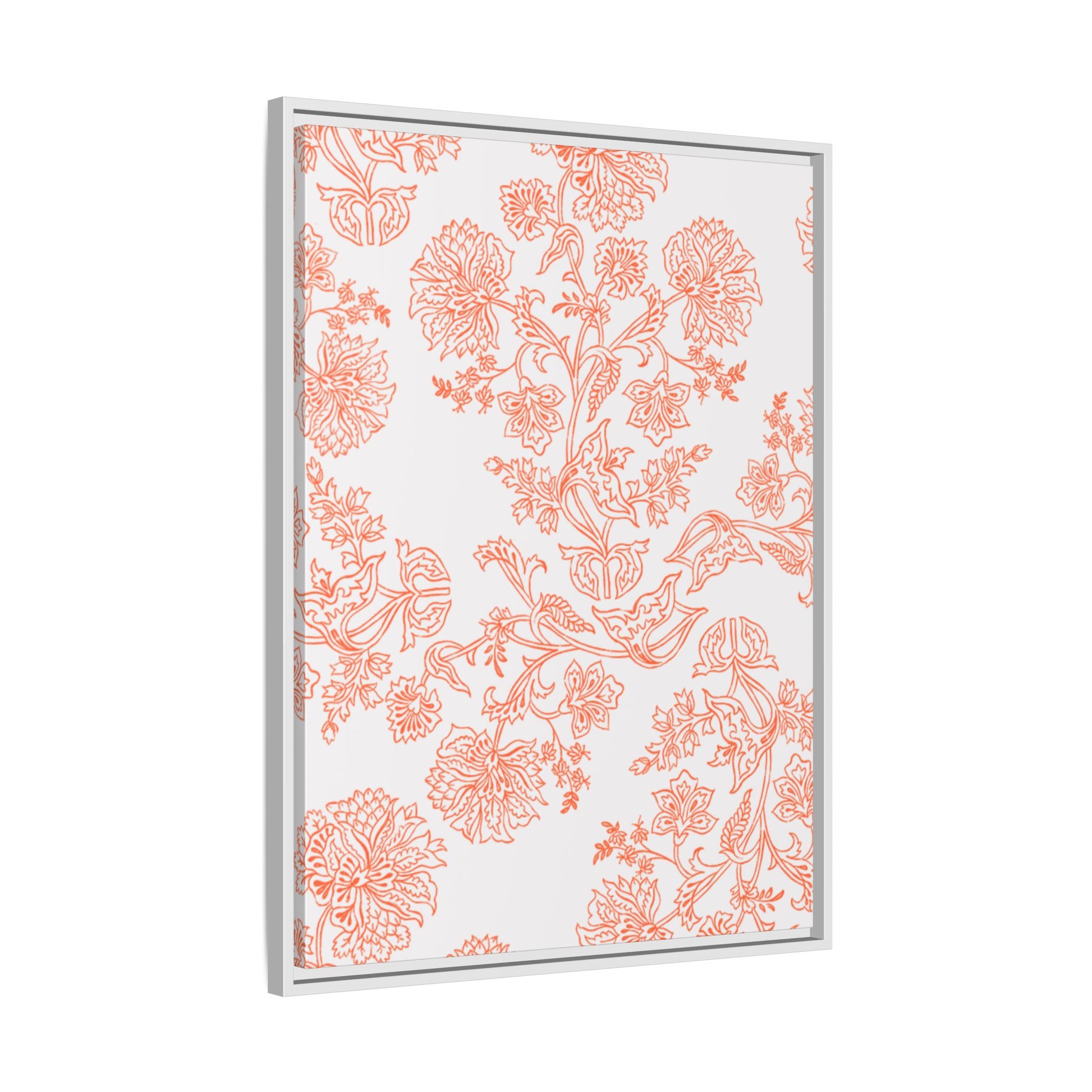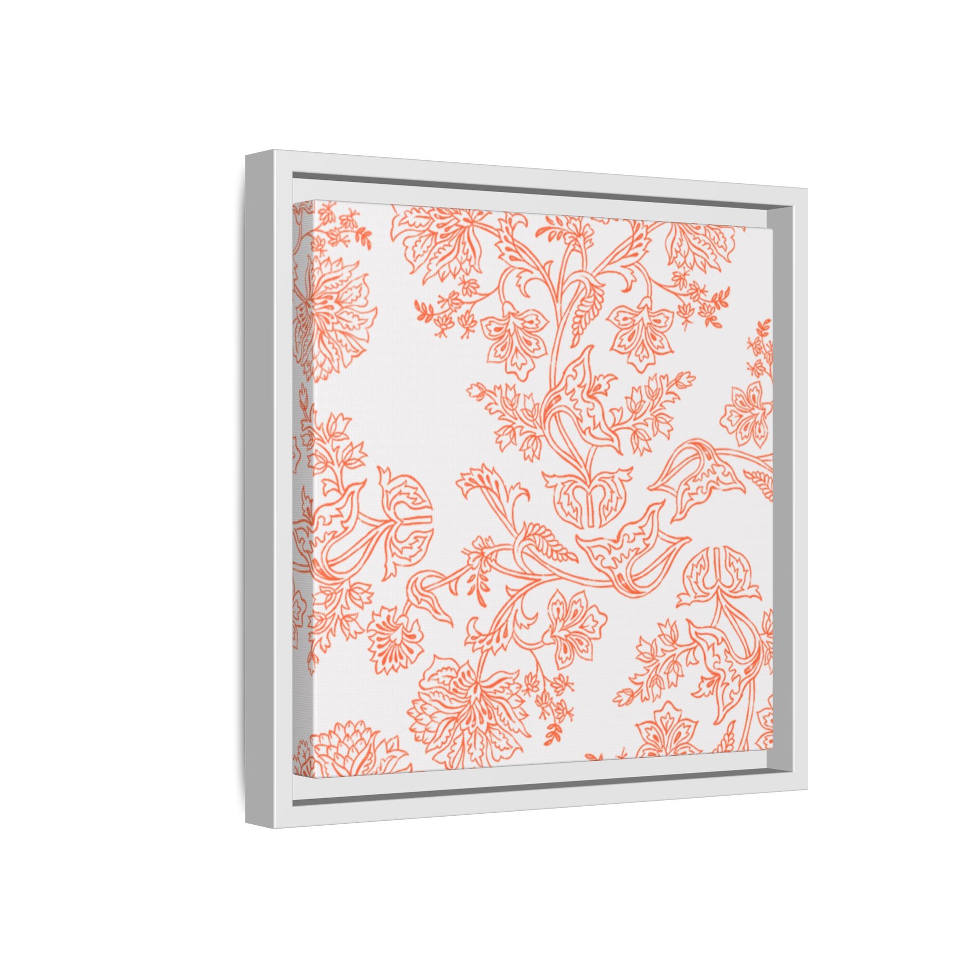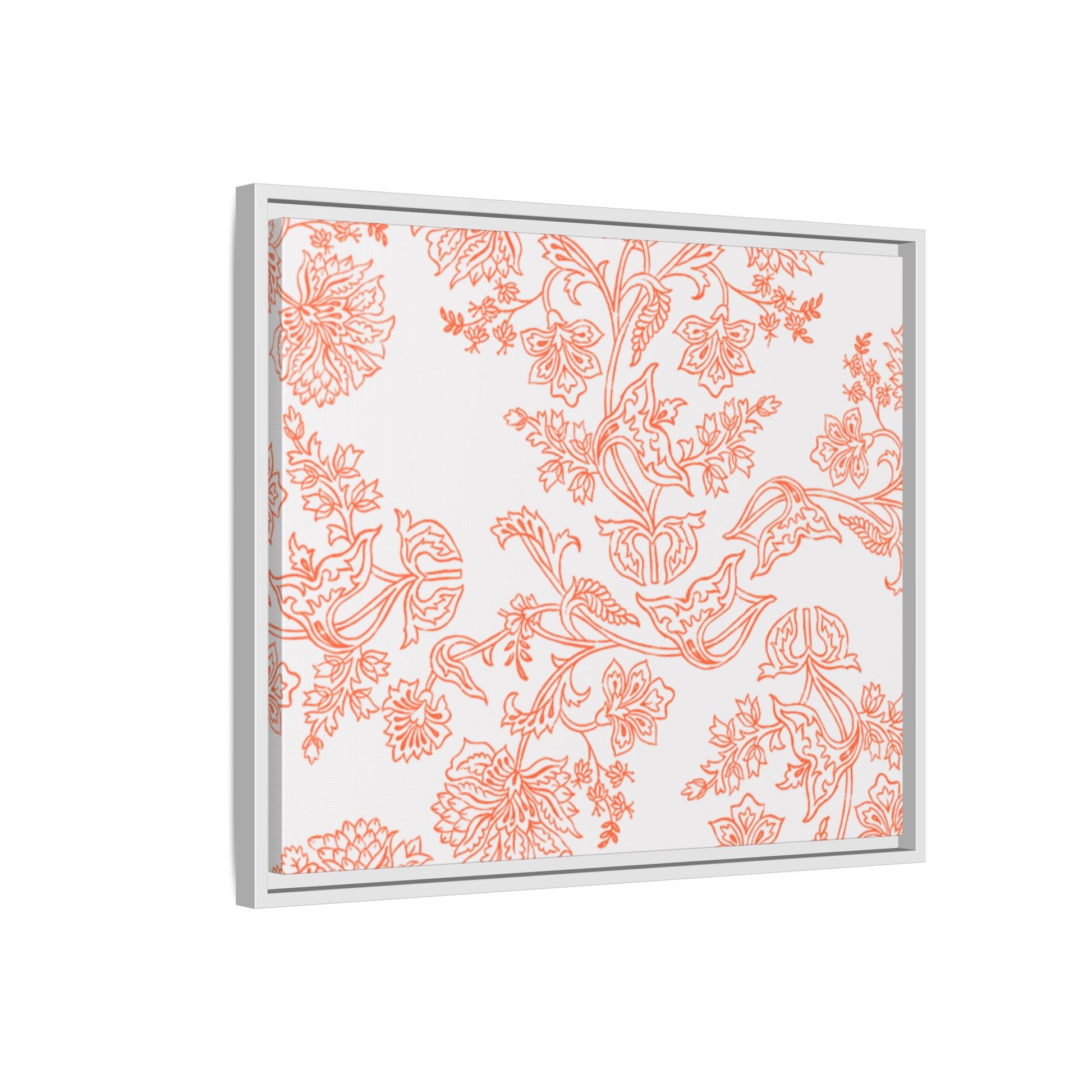 Orange Floral Matte Canvas, White Wooden Framed, Bathroom Decor, Matching Shower Curtain Available, Coral/orange