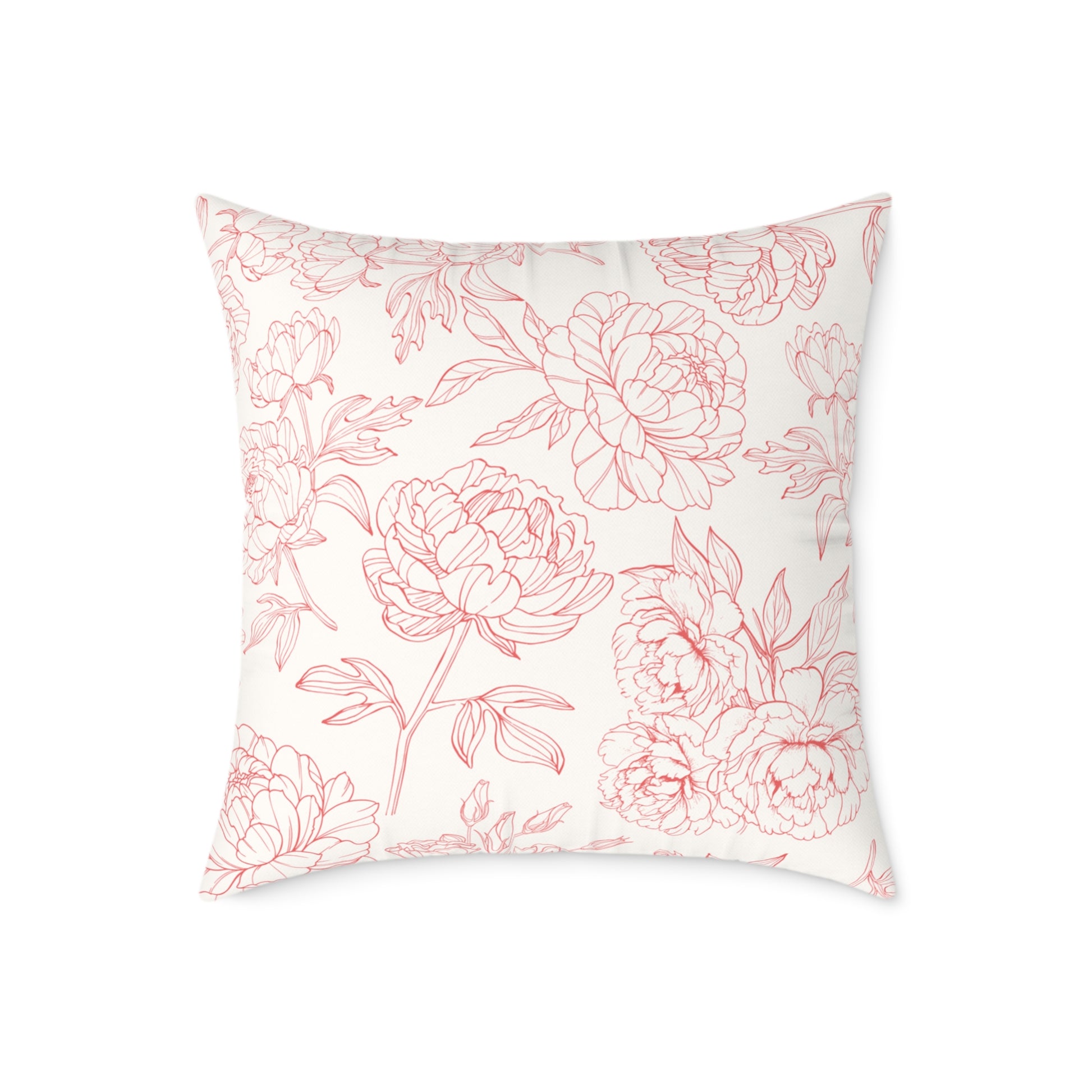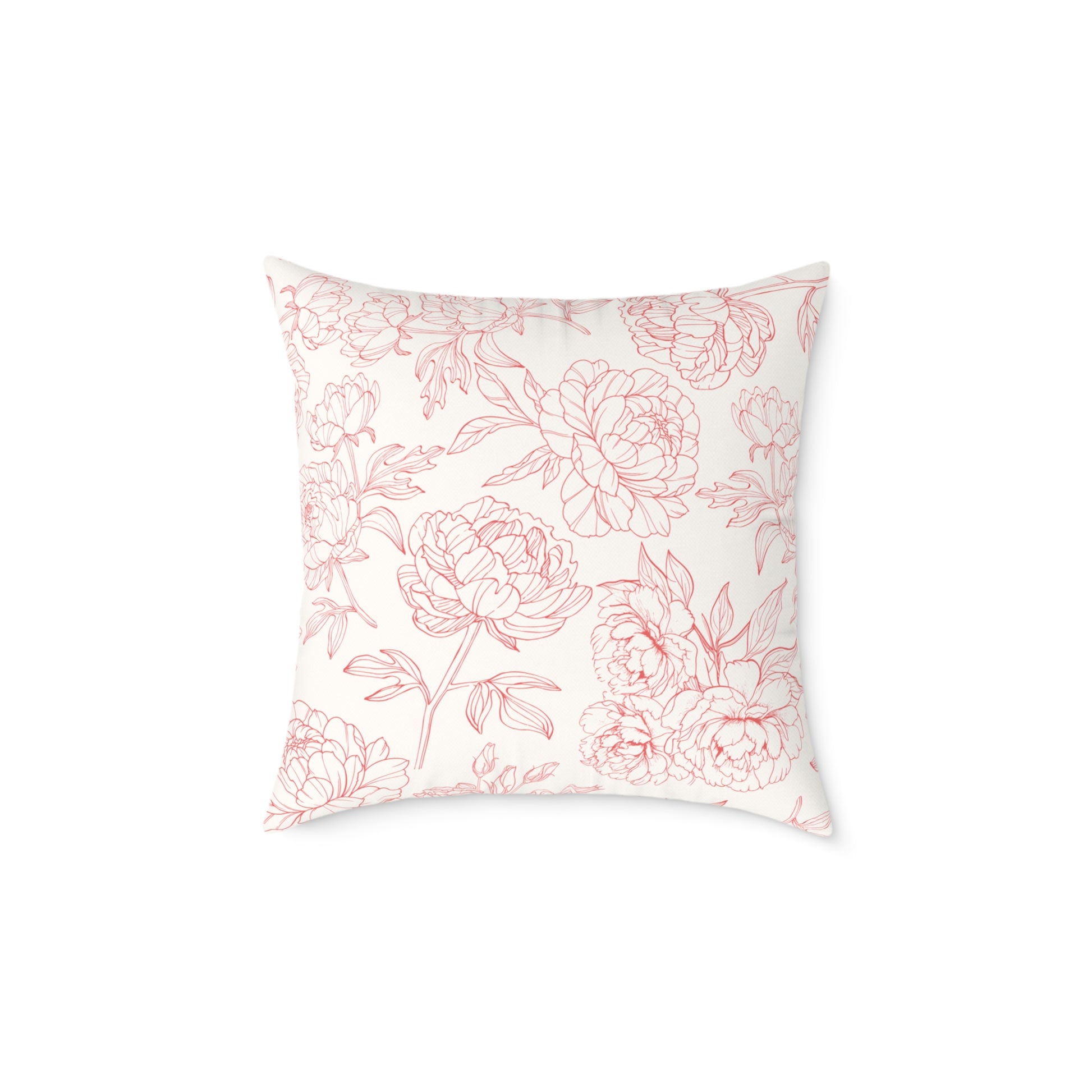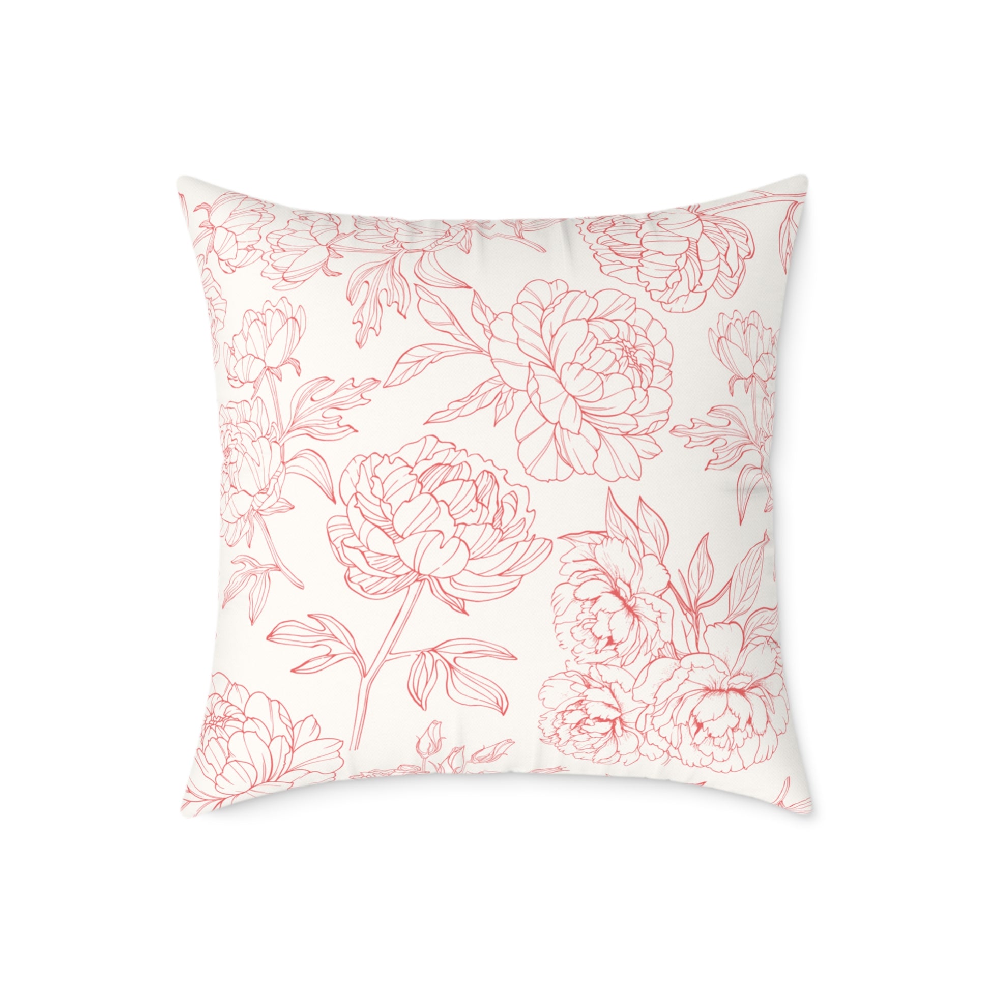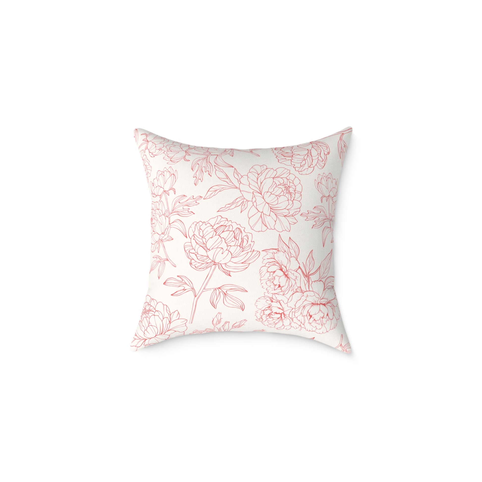 Pink Peony Square Indoor Pillow | Soft Poly Canvas | Floral Accent Pillow