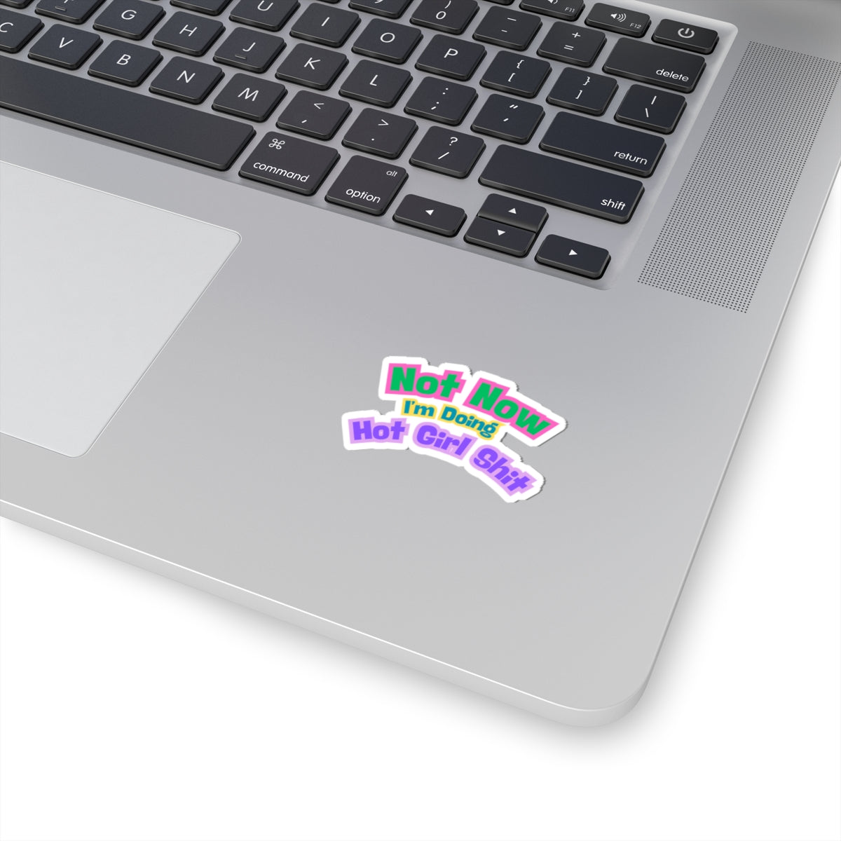 Bright, sassy, and unapologetic — this kiss-cut sticker puts attitude on display. Bold neon greens, pinks, purples, and sunny yellow text form a layered, playful arc that reads like a quick, confident note: Not Now, I’m Doing Hot Girl Shit. It clings smoothly to laptops, journals, phone cases, and clear surfaces, adding a burst of color and personality to everyday items. The glossy finish catches the light and the permanent vinyl keeps the design looking fresh through daily wear indoors. Use it to mark your space, announce your mood, or share a laugh with friends — a small, loud statement that travels with what you carry.