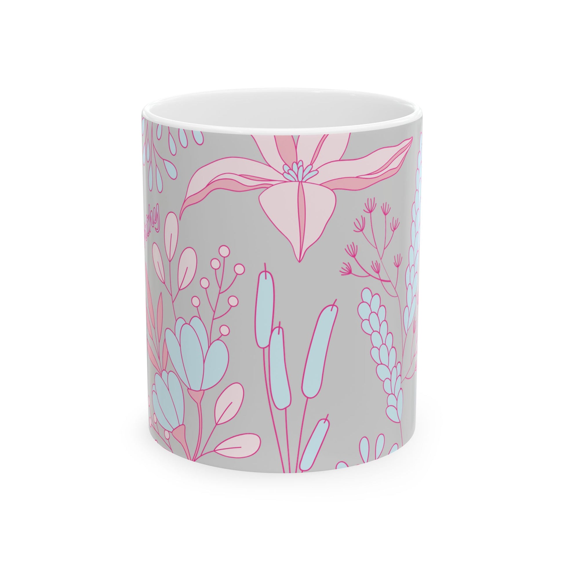 Worthy- Floral Ceramic Mug, Coffee Cup, Gift for Garden Lovers, Cozy Home Decor, Birthday, Mothers Day Gift, Subtle Inspiration, tea cup