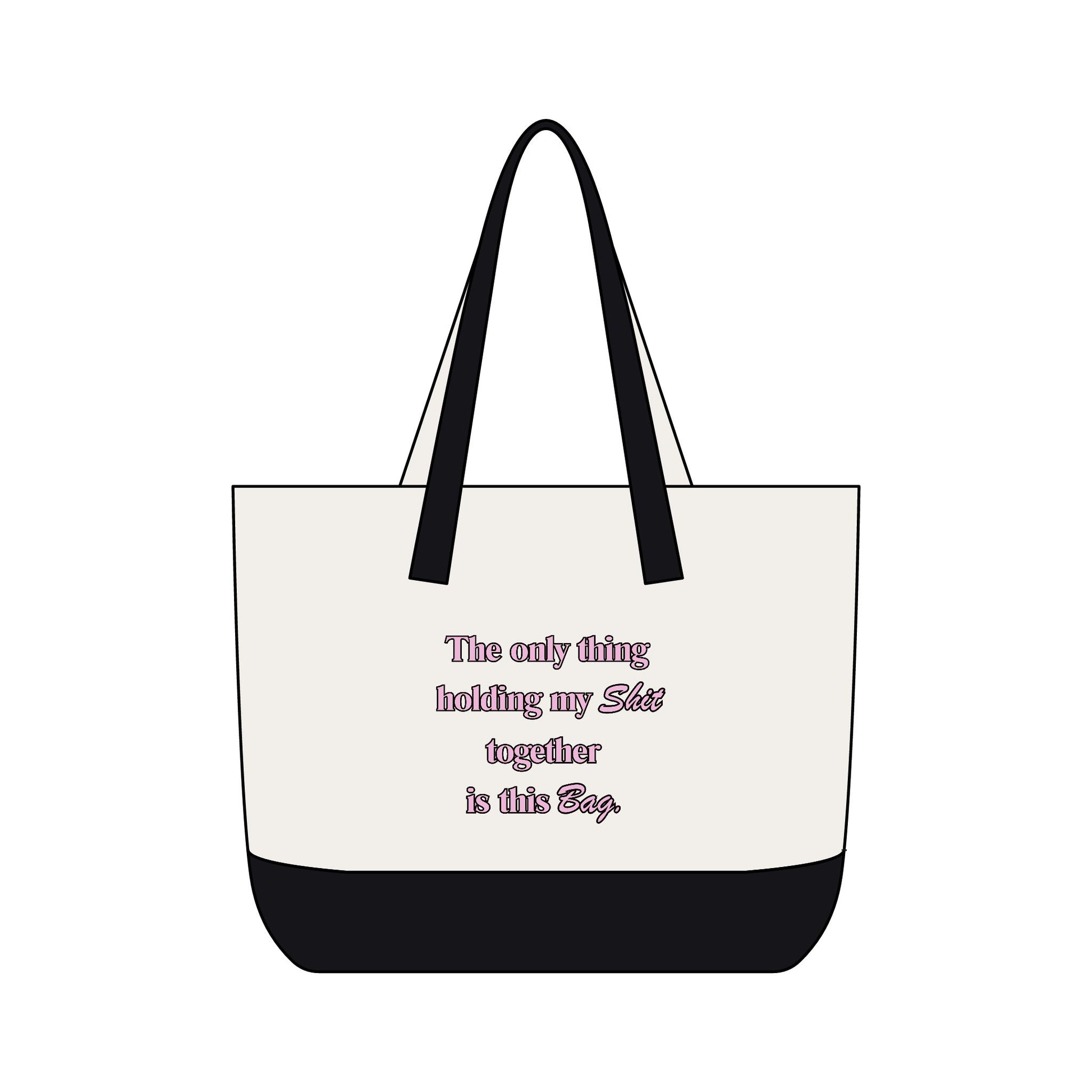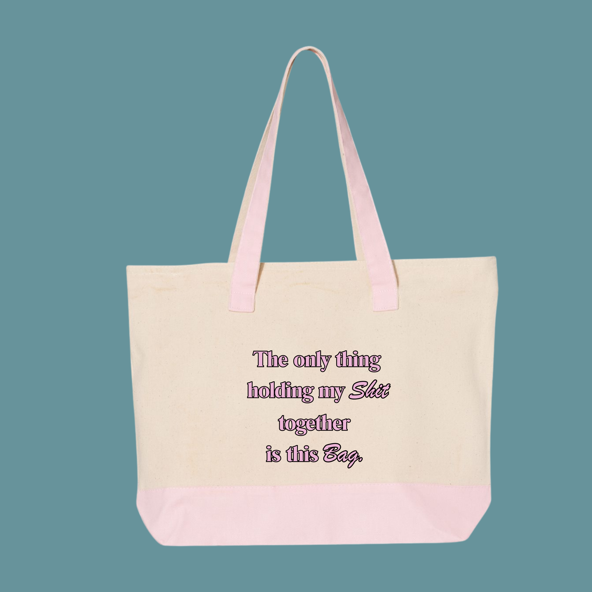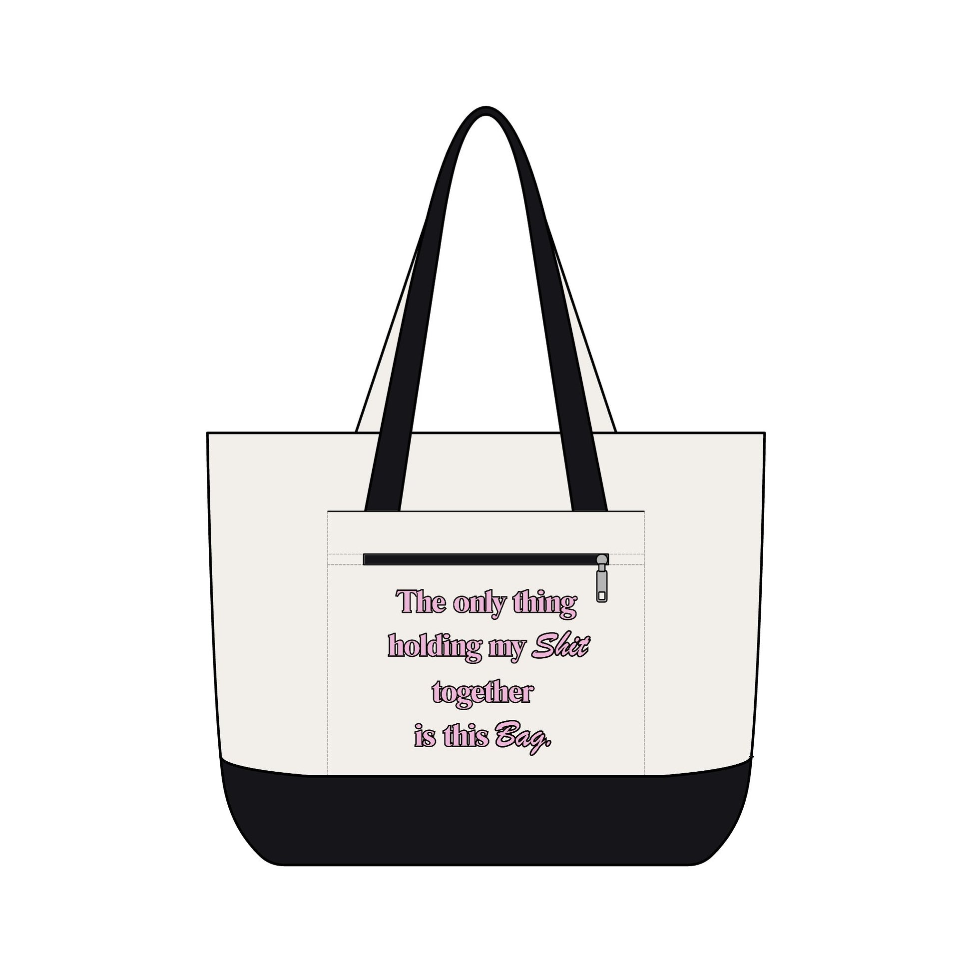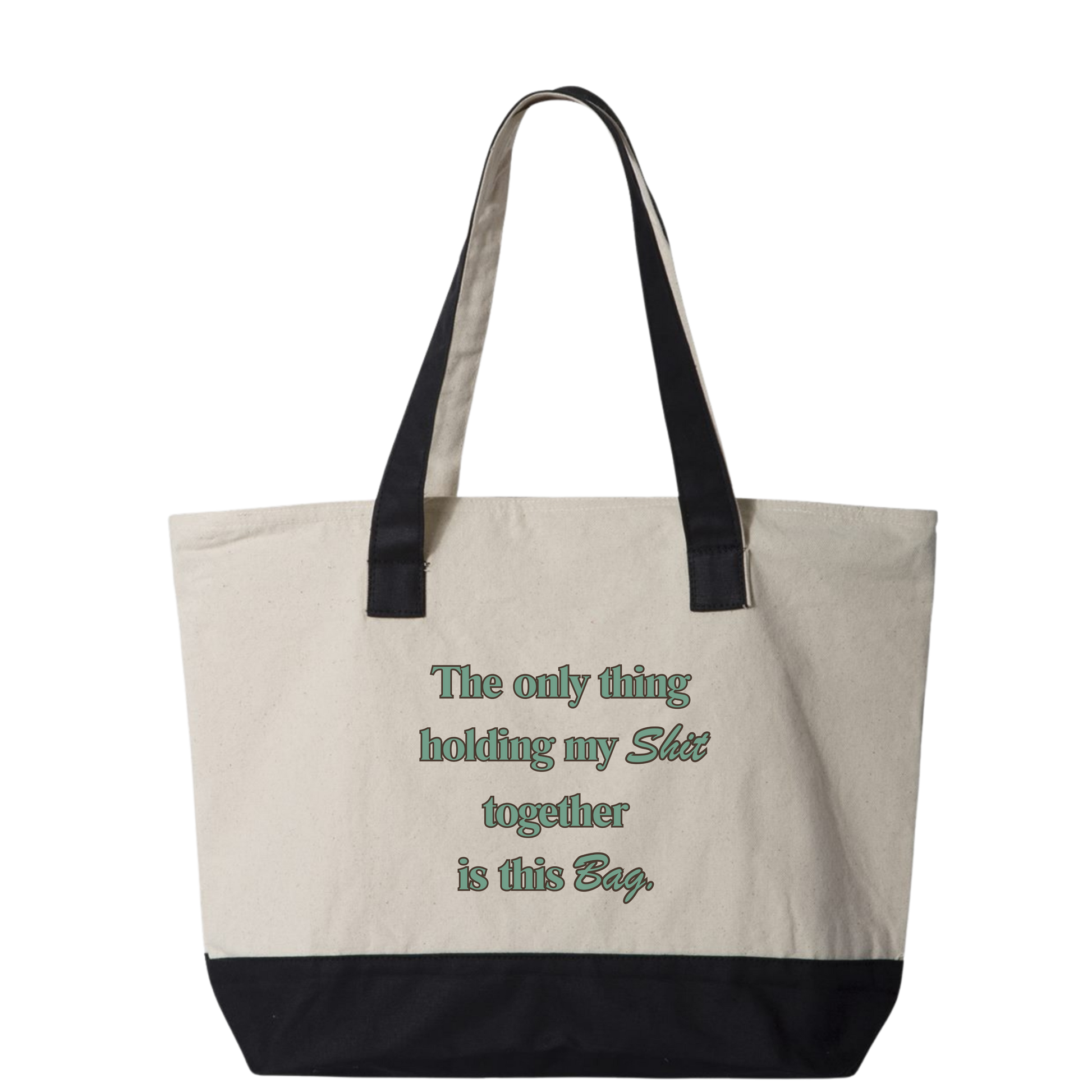 Zippered Canvas Tote Bag- "The only think holding my shit together is this bad"